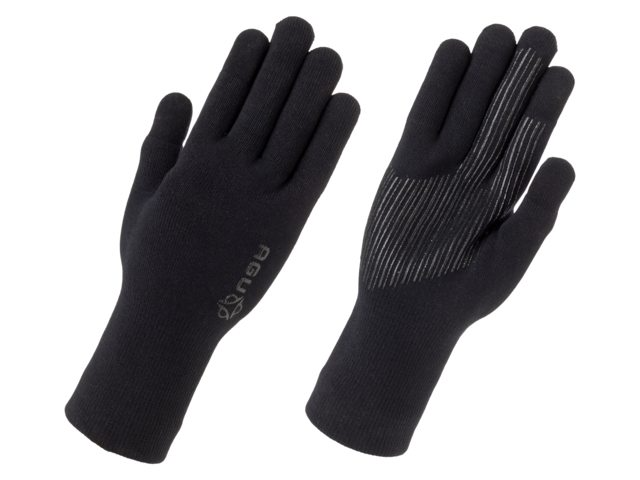 AGU Merino Knit cykelhandsker sortDe vandtætte Merino Knit handsker omslutter dine hænder blødt og glat. Det specielle strikkede Merino-stof holder dine hænder varme, og den vandtætte membran beskytter dem mod vind og regn.Merino Liner uld: Yderlaget af DWR Polyamide holder dine hænder varme og tørre.Vandtæt og åndbar membran: Beskytter dine hænder mod vind og regn, samtidig med at de kan ånde.Sømløst design: Giver en behagelig og tæt pasform omkring dine hænder.Lange manchetter: Kan nemt skubbes under eller over din jakke eller lange ærmer.Hypergrip Silicone print: Giver dig et godt greb om styret og bedrekontrol over din cykel.Komfortzonen er -10 til +10 grader.