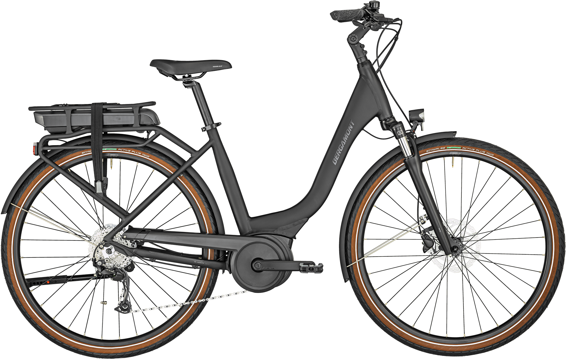 Bergamont E-Horizon 4 RT 2023 – Sort er en enkel og elegant elcykel, der er perfekt til by og land. Den har et lavt stel, der er støjsvagt og kraftfuldt Bosch-motor og et diskret, rack-monteret 400 Wh batteri. 28″, lite AL-6061 tubing, RackType