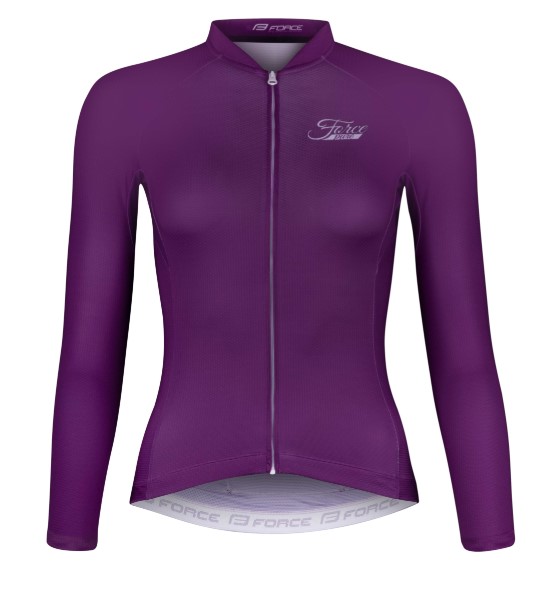 Dame Cykel Jersey i høj kvalitet fra Force med lange ærmer. Lynlås i fuld længe foran. 3 lommer bagpå. Silikone i bunden til at holde trøjen godt på plads. Ventilation i siderne. Perfekt til Forår og efterår. . 86% polyester, 14% elastane.