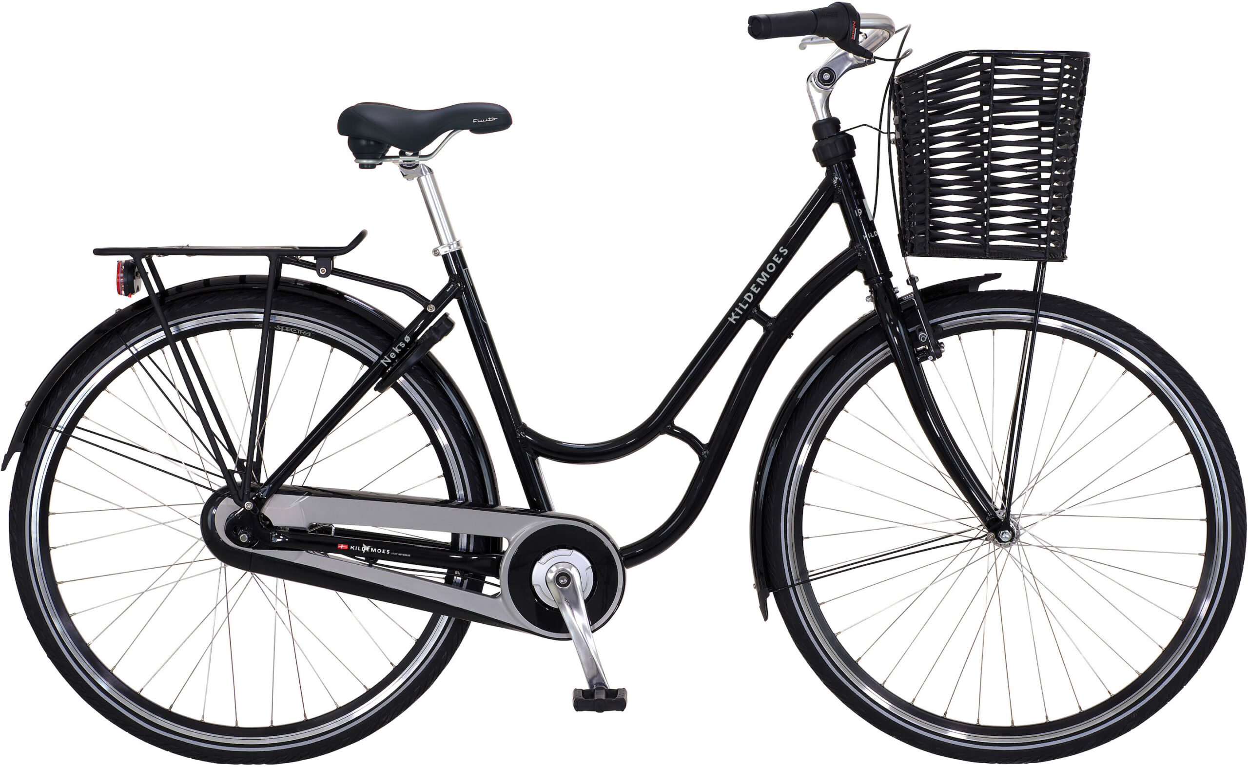 Kør gennem byen med stil på en dame retrocykel i moderne udgave. Cyklen er fyldt med udstyr f.eks. den fastmonterede forkurv, batteribaglygte, lukket kædekasse, bagagebærer, lås og justerbar frempind for optimal kørestilling. Fås i flere farver.