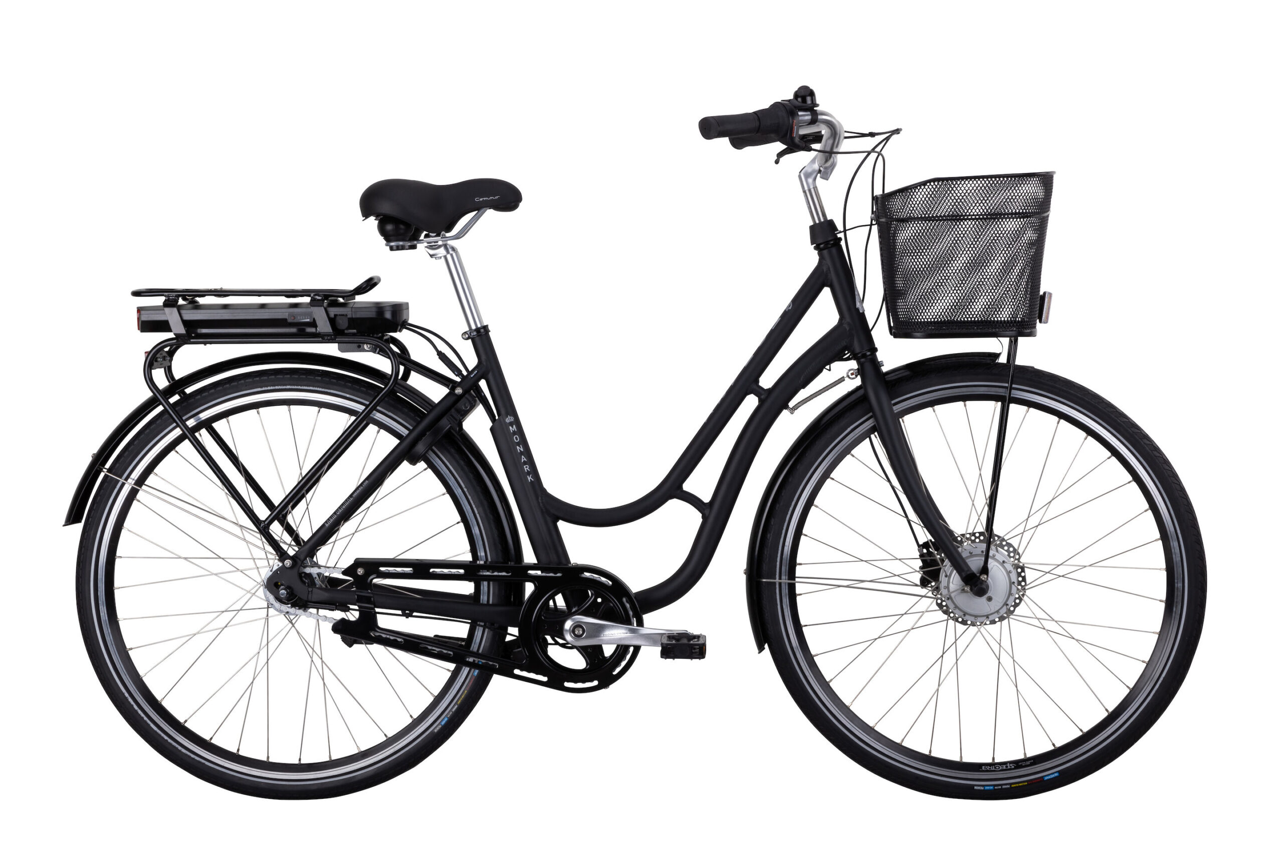 Monarks storsäljande klassiker karin som elcykel. med en tyst och effektiv egoing-motor i framhjulet blir du extra stark mot vinden och tar dig lätt uppför. ett låsbart 11,6 ah batteri sitter snyggt integrerat i pakethållaren som har försetts med klicksystemet avs, där korgar och väskor enkelt kan klickas av och på. karin är utrustad med vårt egenutvecklade system egoing. denna cykel har fotbroms, 3 växlar, aluminiumram och kvalitetskomponenter som är utvalda för att skapa en elcykel med högsta kvalité och prestanda. framtill sitter en fast monterad korg. finns i matt svart med svarta däck/sadel/handtag.