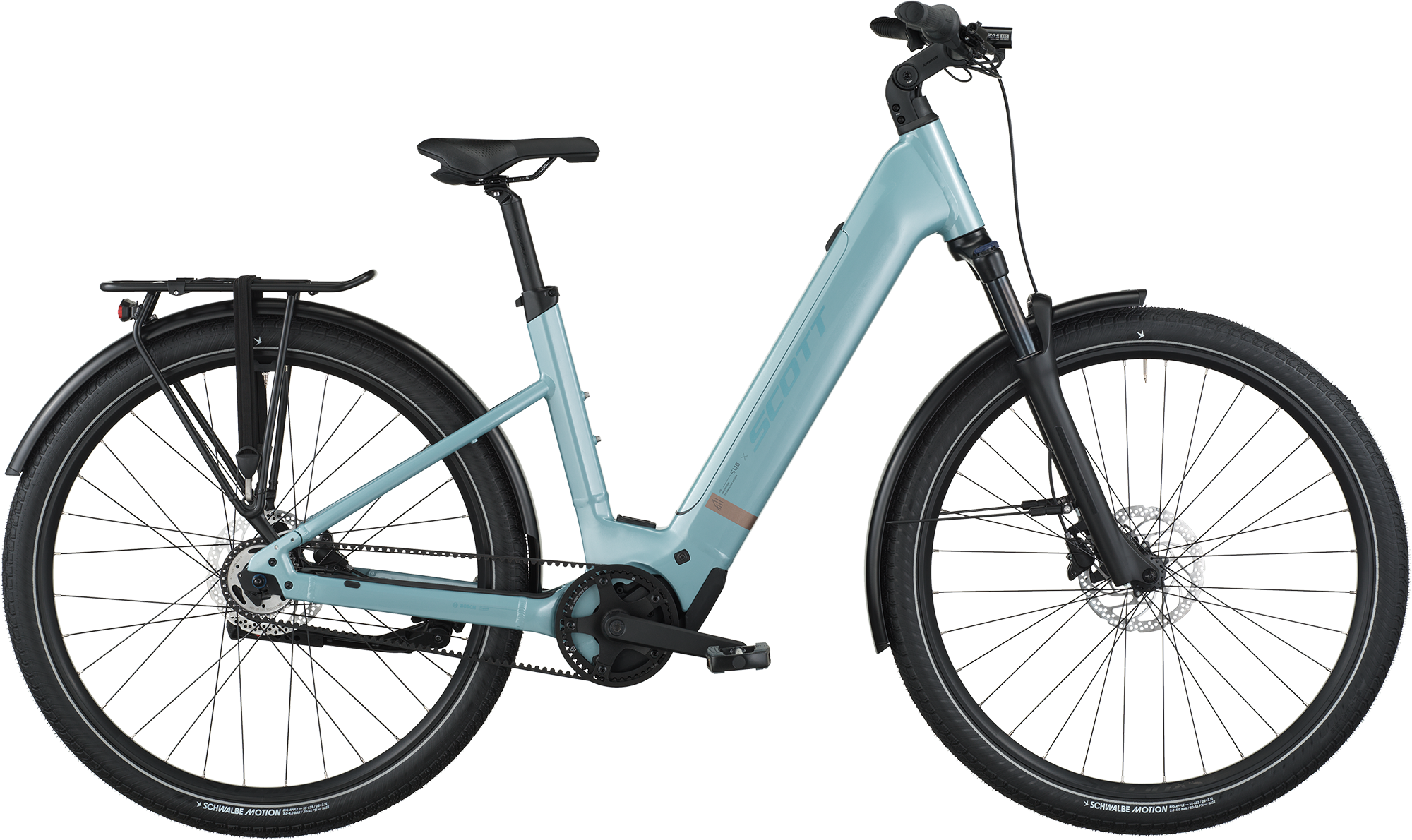 Sub Tour 30 Wave skiller sig ud med sin step-through ramme, der gør på- og afstigning let for alle. Perfekt til både pendling og afslappede ture uden for byen, og ideel til familier, der vil dele cykel. Bosch Performance PX motor og 540Wh batteri giver m