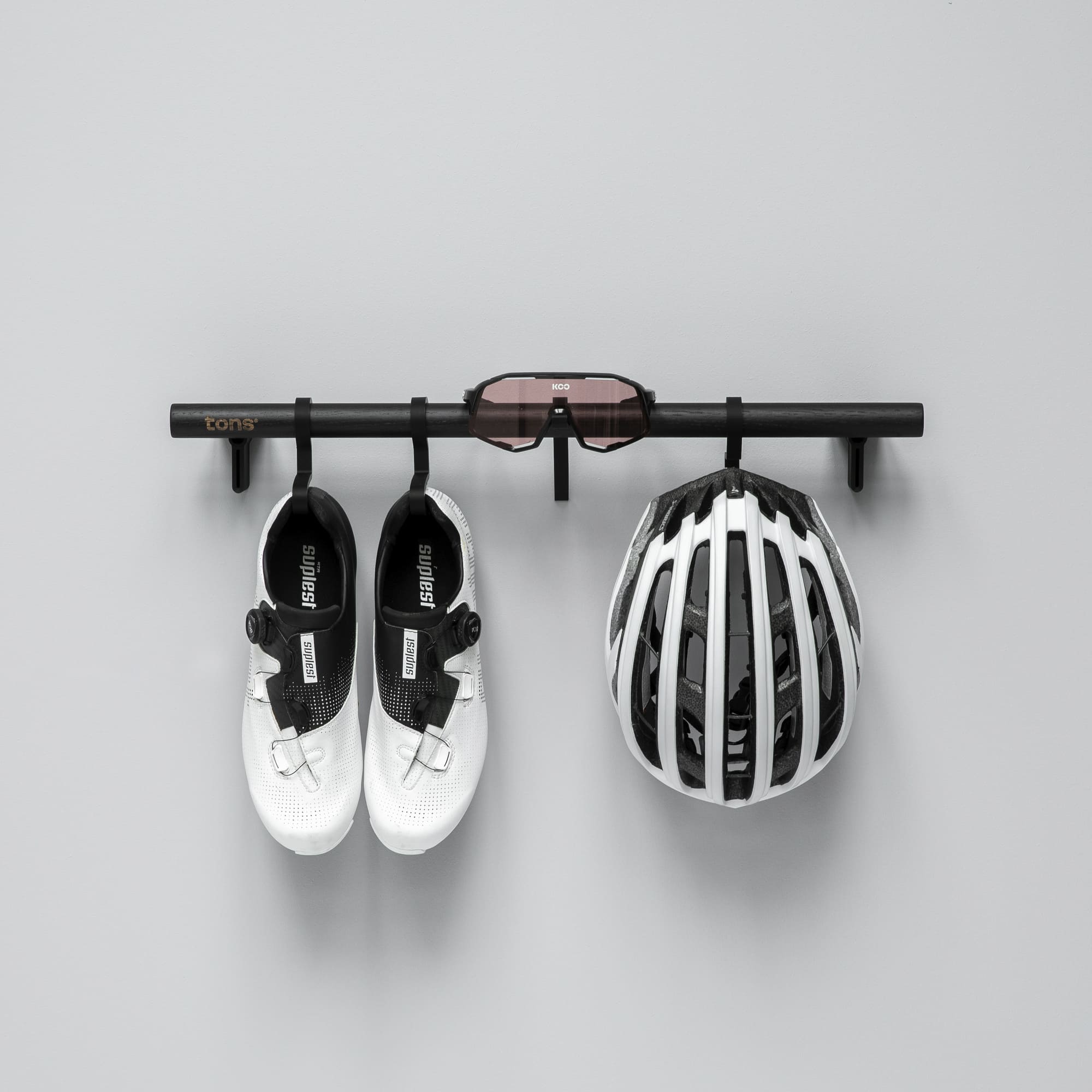 Smart og funktionel opbevaring af dine cykelsko, cykelbriller og hjelm Tons Bar er den ideelle løsning til opbevaring af dit cykeludstyr. Med plads til et par sko, solbriller og en hjelm, holder denne bar dit udstyr organiseret og let tilgængeligt.Nem installation: Plugs og skruer medfølger, så du hurtigt kan få den op at hænge.Massivt egetræ: Fremstillet af certificeret egetræ fra EU, hvilket sikrer holdbarhed og kvalitet.Bæredygtigt design: Beslagene er trykt i Tons Bio Polymer og produktet er designet og produceret i Danmark med fokus på klimaet.Med Tons Bar får du en praktisk og stilfuld opbevaringsløsning, der passer perfekt til dit cykeludstyr.
