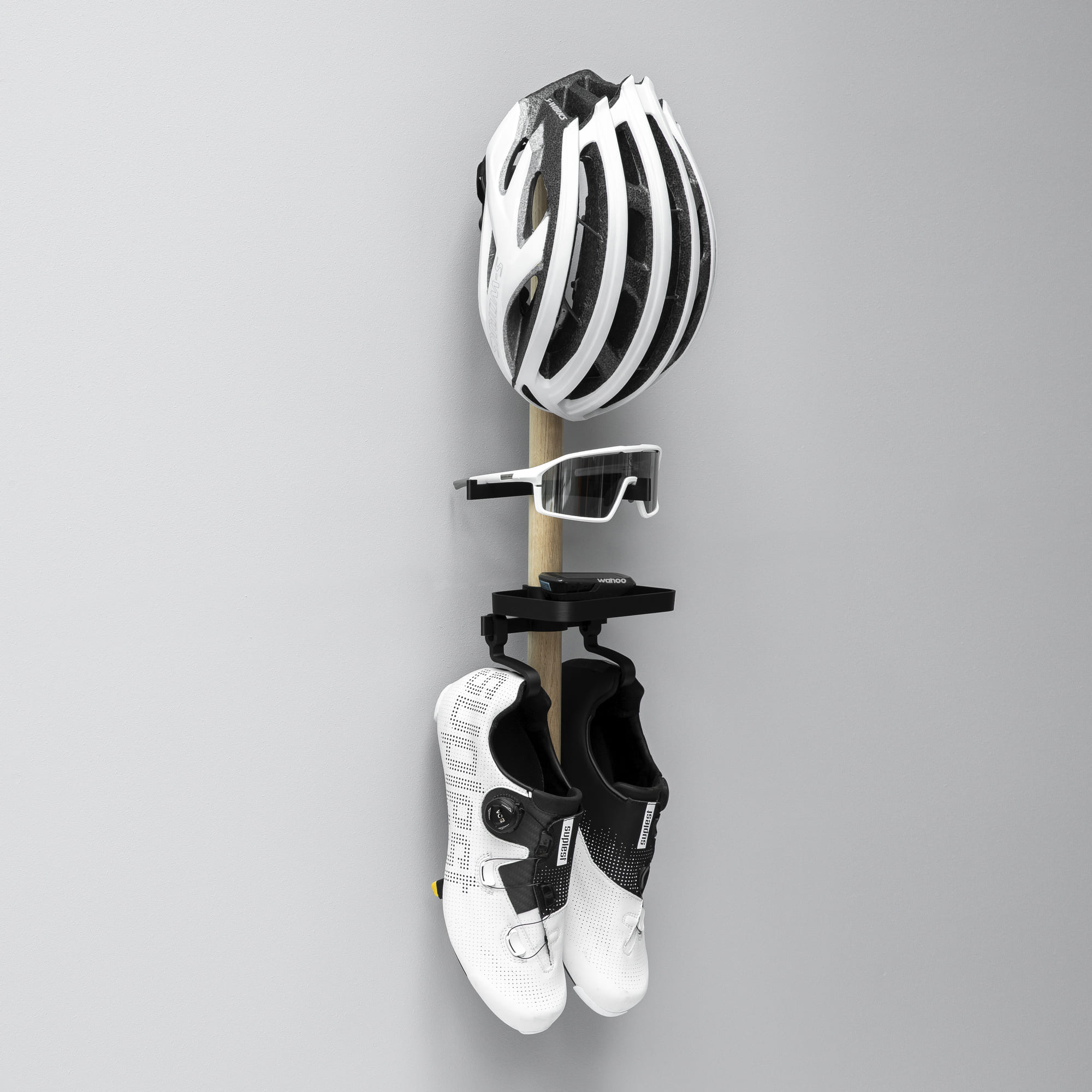 Smart og funktionel opbevaring af cykelsko, cykelbriller og hjelm samt bakke Tons Rack er designet til at være den ideelle opbevaringsløsning til dit cykeludstyr, perfekt til både stuen og entreen.Pladsbesparende design: Racket har plads til et par sko, solbriller, en hjelm og en bakke til din cykelcomputer.Nem installation: Let at montere på forskellige overflader.Bæredygtigt materiale: Stang i massivt og certificeret egetræ fra EU.Innovativ teknologi: Beslag trykt i Tons Bio Polymer.Lokalt produceret: Designet og fremstillet i Danmark med fokus på klimaet.Opbevaring: LodretDet selvklæbende beslag er velegnet til:. Gipsvægge, malede overflader, metal, glas, plast, hårde kompositmaterialer og træ (glatte, forseglede eller malede overflader).Det selvklæbende beslag er ikke egnet til:. Ru overflader som murstensvægge og…
