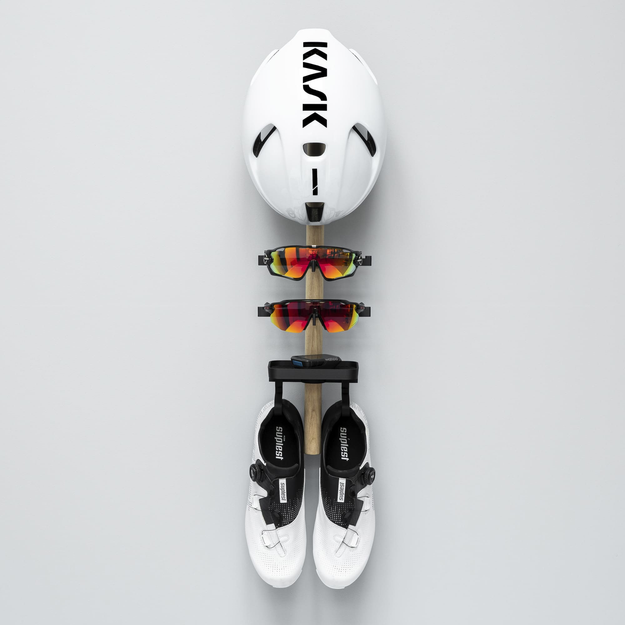 Smart opbevaring af dine cykelsko, hjelm og cykelbriller samt en bakkeTons Rack er den ideelle løsning til opbevaring af dit cykeludstyr, perfekt til både stue og entré. Med plads til et par sko, to par solbriller, en hjelm og en bakke til din cykelcomputer, holder denne rack dit udstyr organiseret og let tilgængeligt.Let at installere: Nem opsætning uden besvær.Massivt egetræ: Stangen er lavet af certificeret egetræ fra EU.Bæredygtigt design: Beslag trykt i Tons Bio Polymer.Lokalt produceret: Designet og fremstillet i Danmark med fokus på klimaet.Velegnet til: Gipsvægge, malede overflader, metal, glas, plast, hårde kompositmaterialer og træ.Ikke egnet til: Ru overflader som murstensvægge og ubehandlet træ samt tapeter og vinyloverflader.